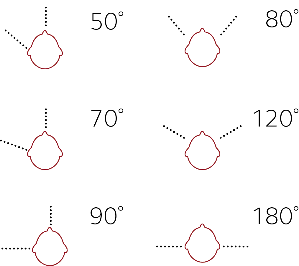 | AJUSTE | ÁNGULO APROX. DE FOCO EN ADAPTACIÓN MONOAURICULAR | ÁNGULO APROX. DE FOCO EN ADAPTACIÓN BINAURAL |