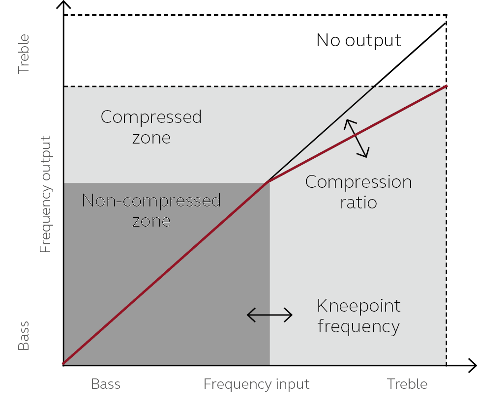 FunciónPermite una mejor audición de los sonidos de altas frecuencias al comprimirlos en una zona de frecuencias donde sí pueden oírse.