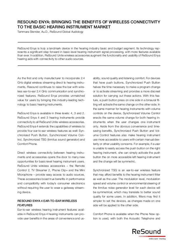White paper - ReSound Enya: Da oggi i benefici della connettività wireless negli apparecchi acustici di fascia basic